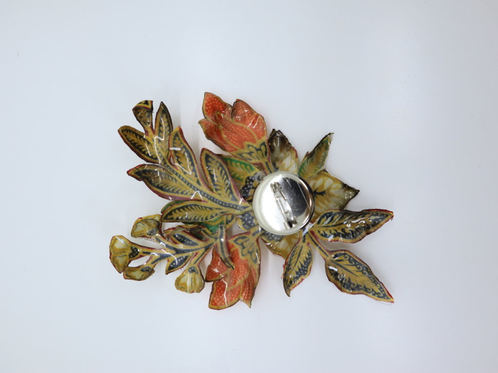 Tambahkan sentuhan keindahan pada penampilan Anda dengan bros sospeso handmade yang terbuat dari kain batik perca, aksesori yang dibuat dengan teknik seni sospeso. Bros ini menampilkan desain bunga tiga dimensi yang cantik dan detail, memberikan kesan elegan dan istimewa untuk berbagai acara.
